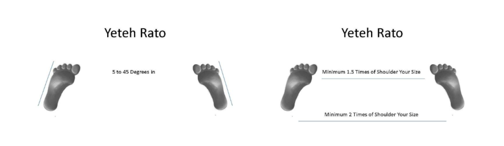 Unmodified Rato is an inverted version of Horeima Rato. Both feet are on the same line and perpendicular to each other, the toes forms a 90 degrees angle. The front leg is bended, the back leg is straight, about 60% of the body weight is on the front leg and about 40% on the back leg. The distance between the feet is about 1.5 times the shoulders’ width.