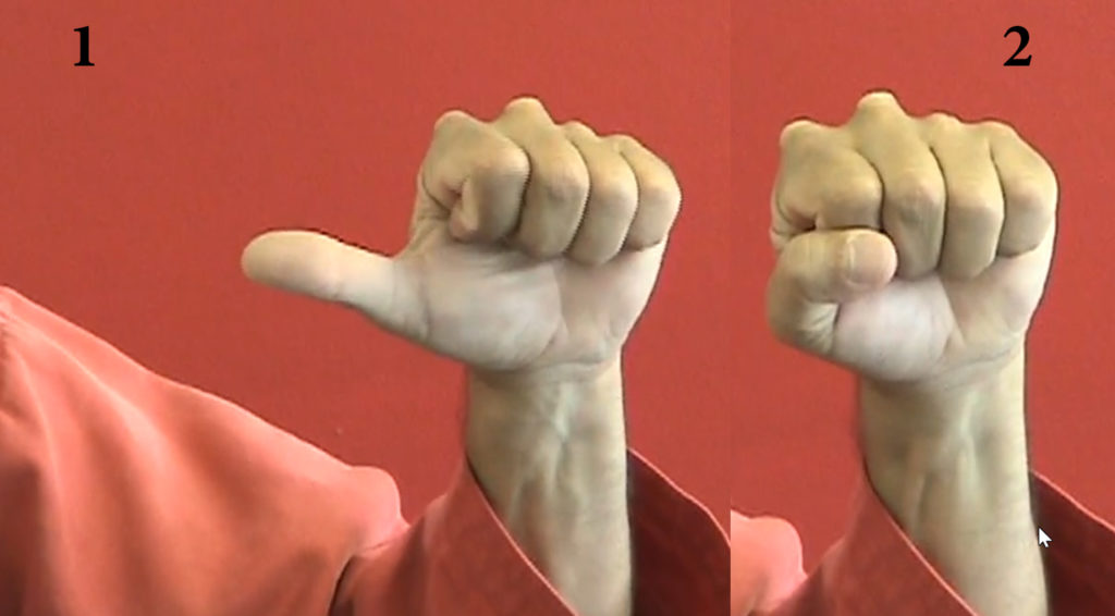 برای مشت کردن صحیح دست ابتدا چهار انگشت را تا نیمه طوری جمع میکنید که هیچ فضایی بین آنها وجود نداشته باشد سپس انگشتان را در کف دست گلوله میکنید (حالت ۱) بعد بند اول شصت را روی بند دوم انگشت سبابه می گذارید حالت ۲