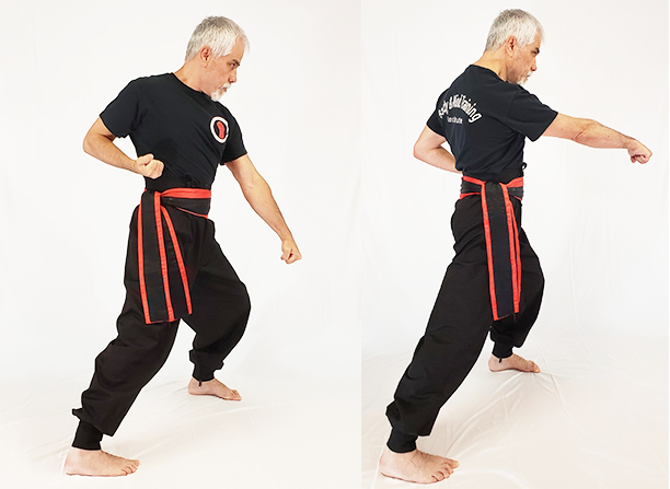 Toma Rato is the last transitional position. This dynamic stance can be used to change direction or to move to the side.