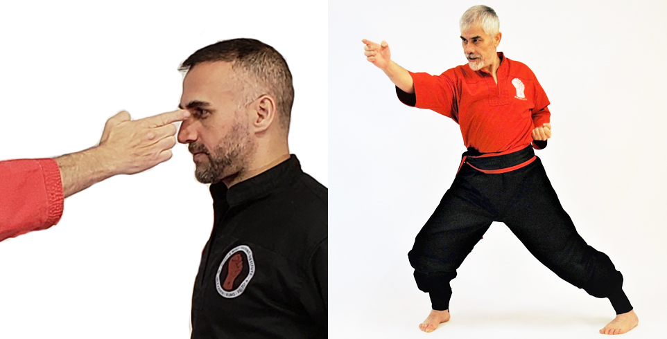 ضربه با یک انگشت (سبابه) به چشم، گلو و زیر دنده ها. با توجه به اینکه سه انگشت کناری بایستی در خود جمع شوند (شکل) و همینطور شست دست نیز جمع شده و در قسمت نرمی کناری دست فرو رود. بیشتری میدهد